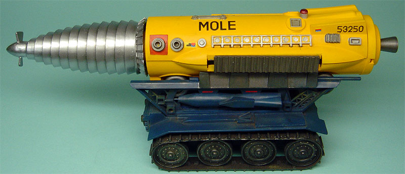 モーターはMOLEに仕込まれており、ドリルが回転し、サイドキャタピラが前後に可動する。
