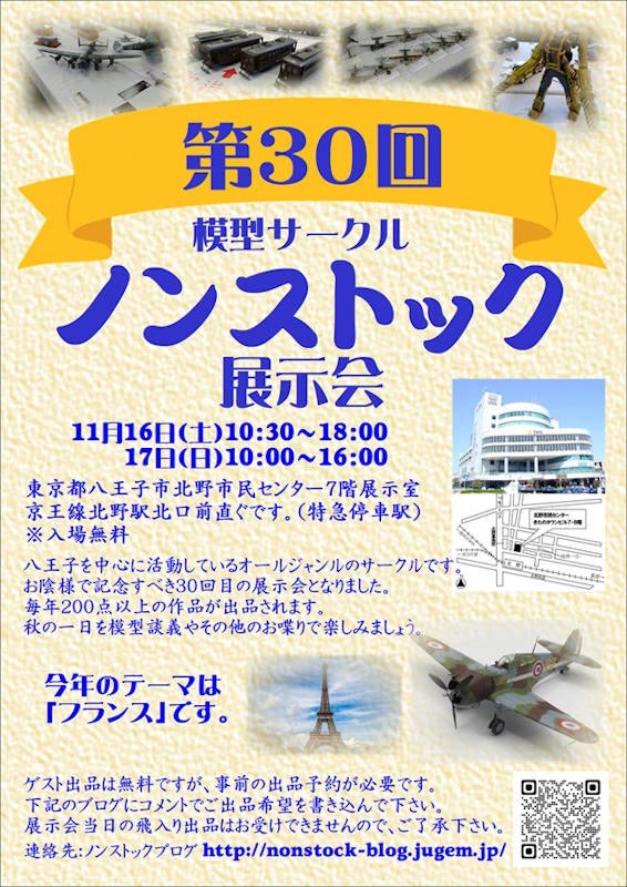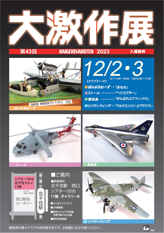 サークル員の作品展示、無料体験模型教室、メンバーの貯めこんだ罪キットの激安放出市を実施予定!