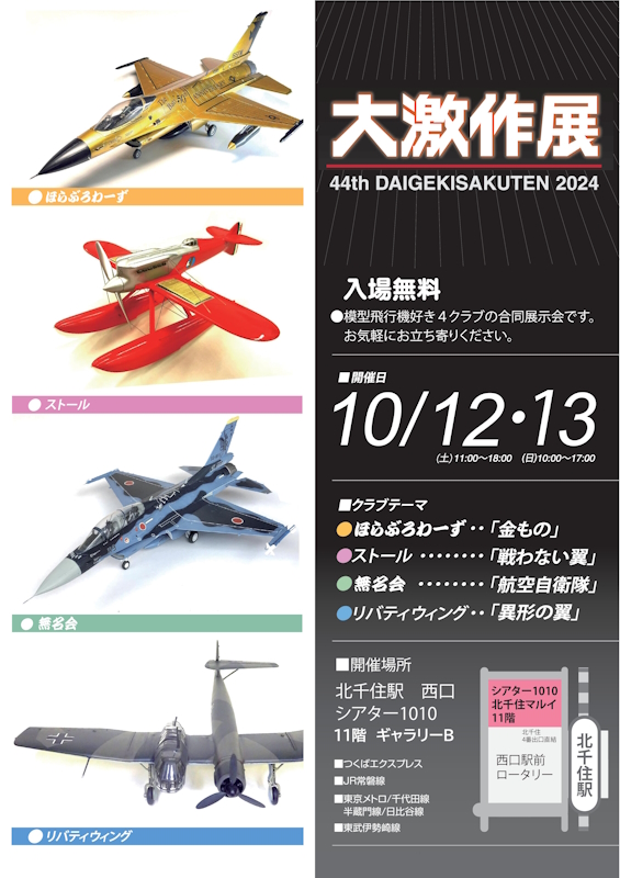 土地がら成田空港に近いので飛行機模型のみの展示会ですが、興味のある方は是非お越しください