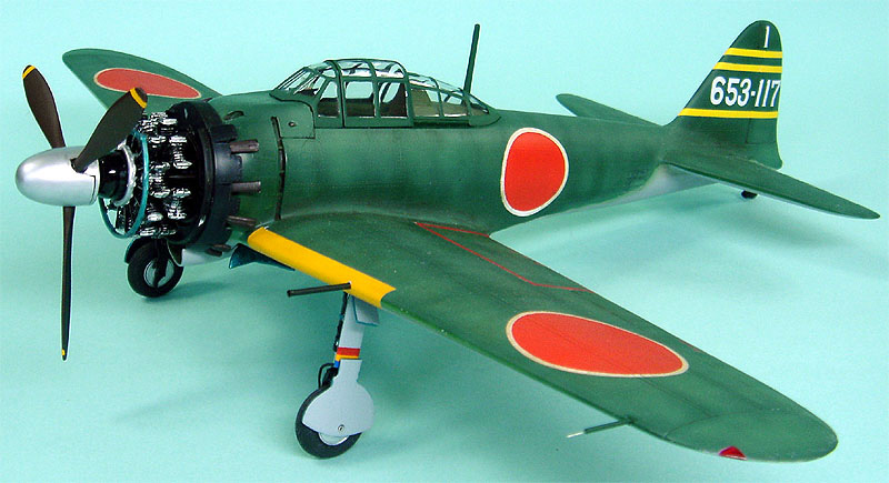 今見てもスタイルは破綻無く、カウリングをはずすと 当時としては精密なエンジンを見ることができます。主翼形状もなかなかです。ただ、主翼後縁が厚く、修正するとエルロンの羽張りモールドが消えてしまう。胴体後部が細く、着艦フック部分が無いという欠点はありますが、そんなことは些細なこと。