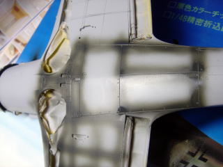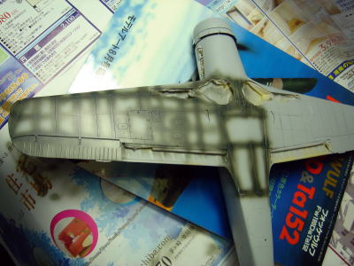 今回は主翼上面と胴体上面をフリーハンドでエアブラシで塗り分けました。