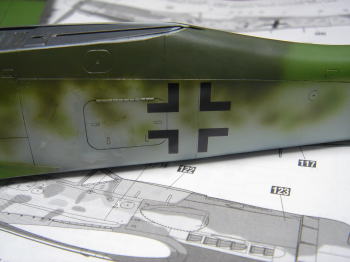胴体側面のモットリングは やはりこの2色を使ってエアブラシで吹いてゆきます。