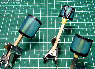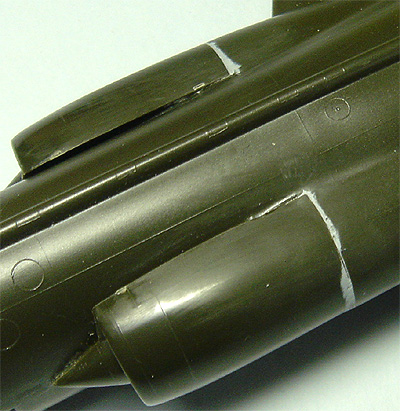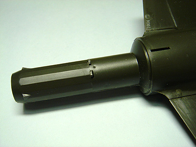 また、胴体後部がはずれて、エンジンのアフターバーナーパイプを見られるようになっていて、エアブレーキも開閉選択式です。 ガトリングガンのアクセスパネルも取り外せるようになっていて、キャノピー後部も開閉選択式で、電子装置が見られるようになっていて、サービスたっぷりです。 当然とはいえ、翼端燃料タンクとサイドワインダーが選択式。また、空中給油パイプの部品が付属しています。 |
