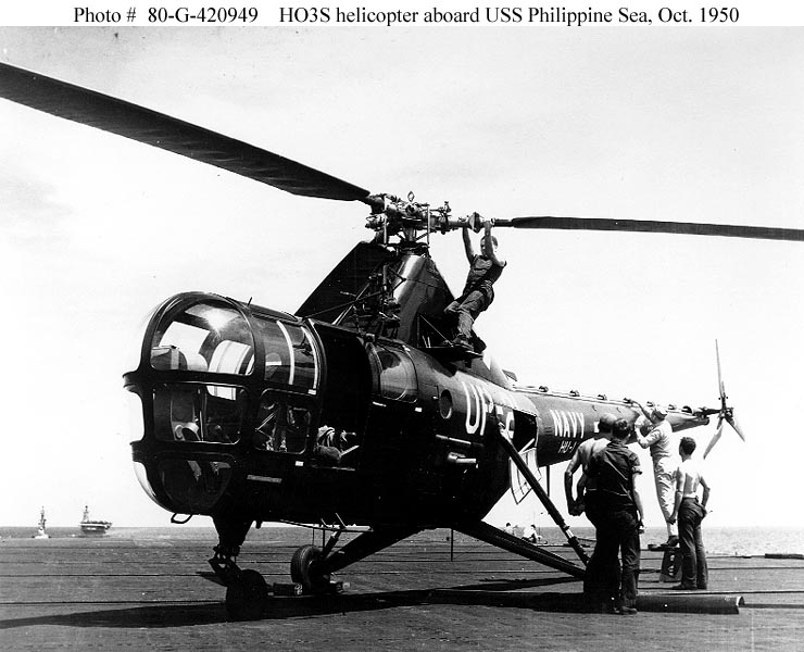 CV-47 “USS Philippine Sea”の艦上で整備を受けるHU-1のHO3S-1