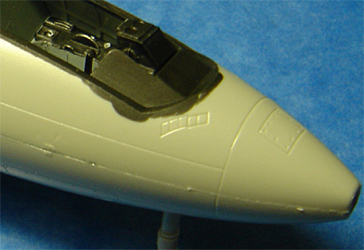 デカールを貼った後に、グロスクリアを吹いています。のっぺりとした艶のあるシーホークの雰囲気が少しでも出せればと思います。塗装図では脚柱もホワイトとされていますが、シルバーとしました。 |