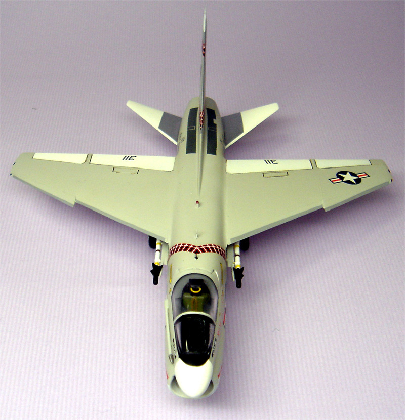 当時の世相はベトナム戦争の泥沼、真っ只中。コルセアⅡは米海軍おろしたての新鋭攻撃機でありました。日本ではまだ、資料に乏しい中をハセガワがリリースしたため、スタイルの疑問点もついてまわり、わかりやすい最大の欠点は機首レドームが太く、丸いという団子鼻でした。また、エアインテークのリップが薄く、立体感がなく、底が浅いのも気になりました。