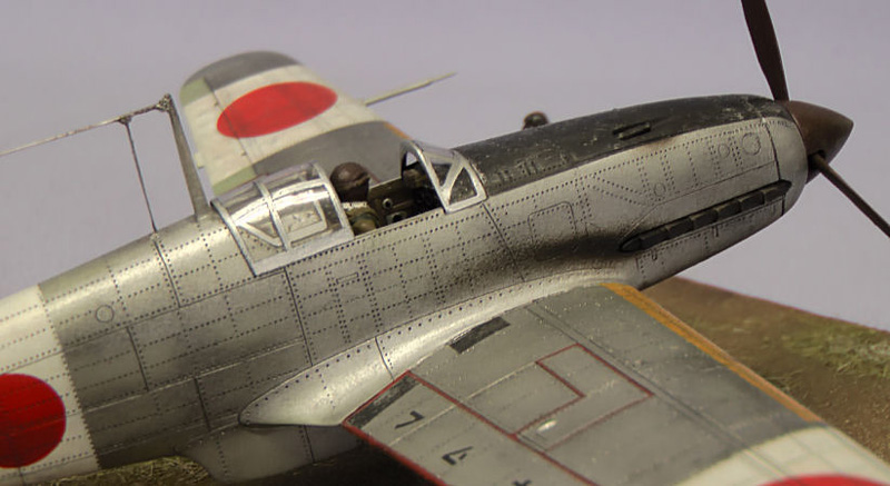 ベースの制作、キットのフィギュアをコクピットへ搭乗させています。思ったより良い出来をしていました。リベットも、モールドされていましたので墨入れしました。マーキングは全て塗装で表現しました。
