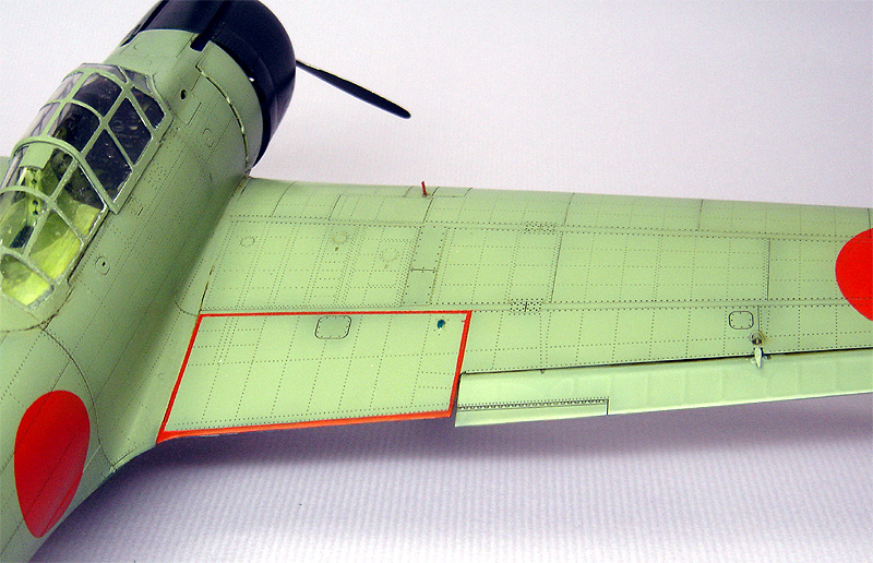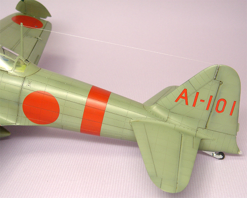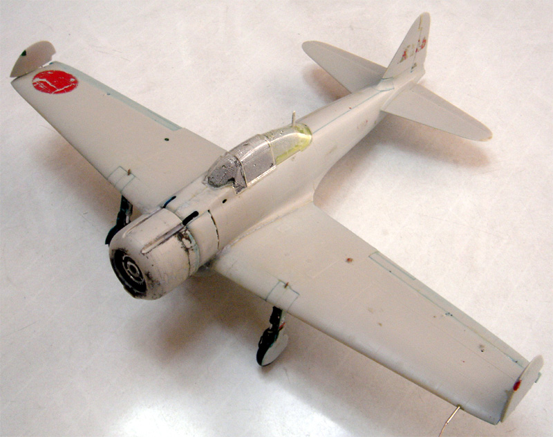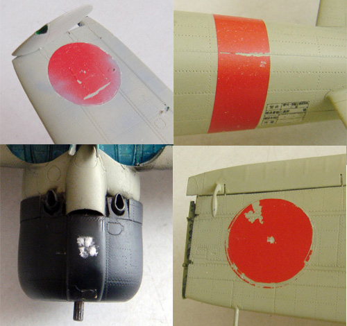 下の写真は これからレストアにとりかかろうという零戦21型です。自分以外の人の作った作品をレストアするのは初体験。 塗装面に埃や油汚れがつき、デカールが剥がれ痛んでいるとはいえ、よく見ると自分ではこんなに精密な追加工は不可能!と感心する箇所が多いのであります。相川さんの魂が宿っている作品に手を入れるのはあまりにも切ない。私にはそんな資格も実力もありません。それで痛んでいる塗装のみ再塗装することにいたしました。
