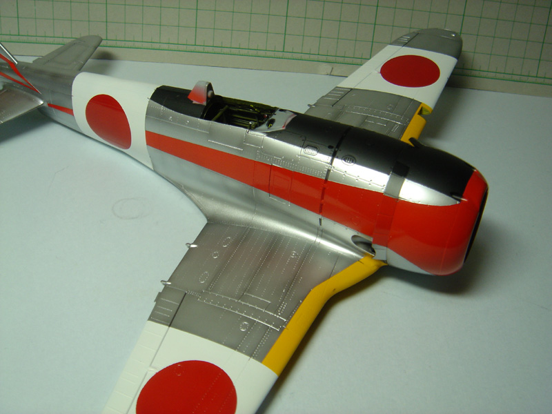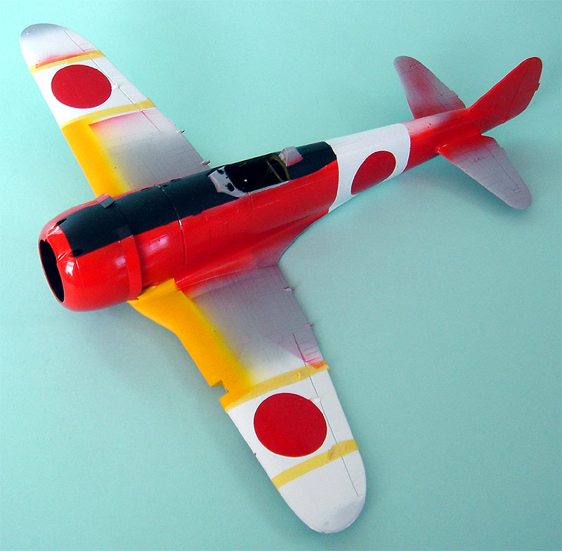 胴体赤ラインはグンゼのNo.68モンザレッド。日の丸はNo.3赤を使っています。