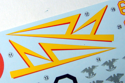 (1)キットのデカールは黄色。震天制空隊はの赤のマークですので、このデカールを型紙に使います。