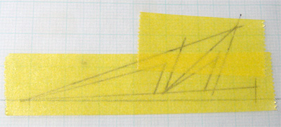 (3)マスキングテ-プをその上に貼ると、鉛筆の粉が転写します。