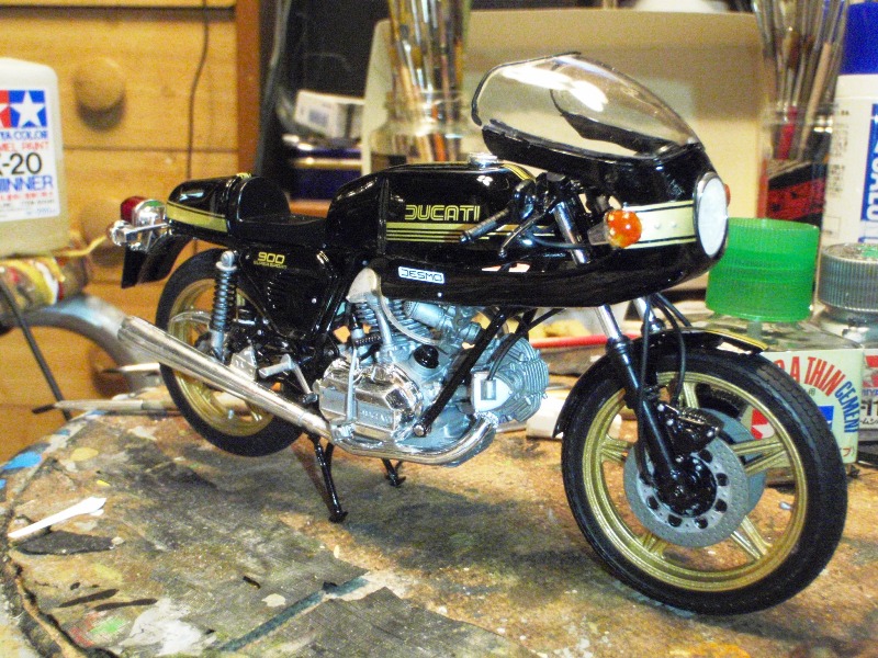 バイクの第段はバイク好きなら1度は乗りたいドゥカティです。キットはタミヤの1/12ですがどれもすばらしいキットだと思います。