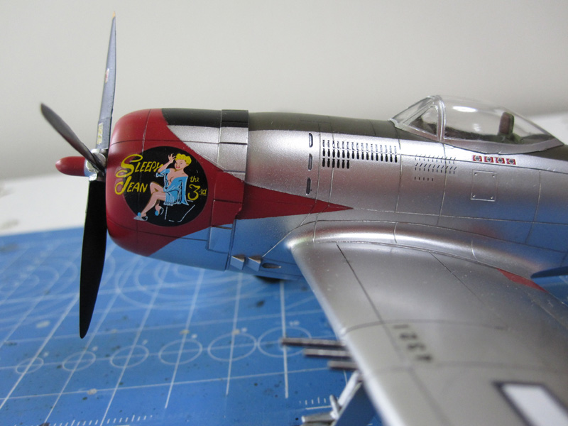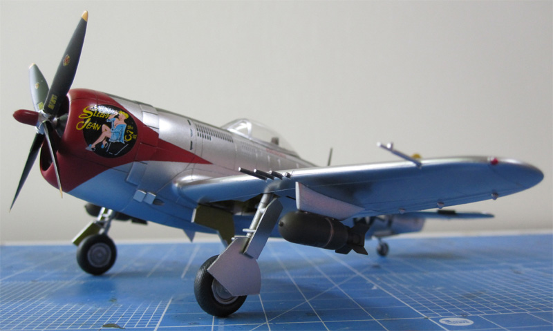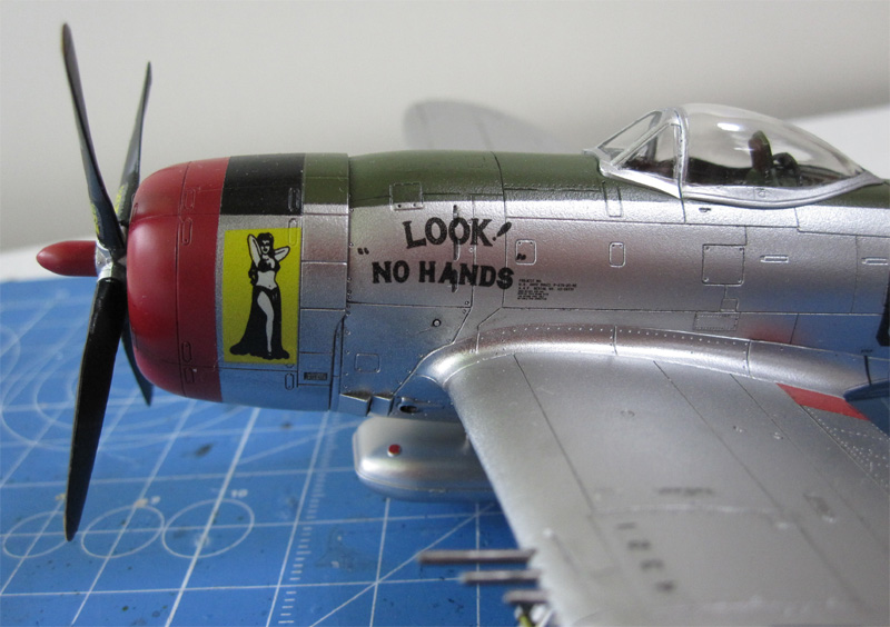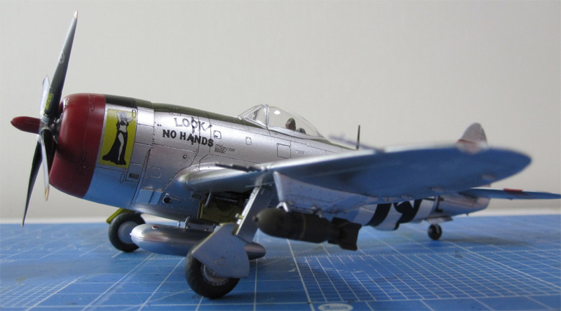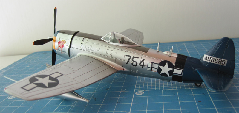 前述(1)のバブルトップキャノピー版です。やっぱりサンダーボルトは銀塗装が映えます。デカールはSKY MODEL (SKY 72 050)からピックアップしました。