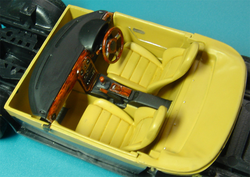 ダッシュボードとハンドルは先回のコブラと同じく、木目塗装にしました。