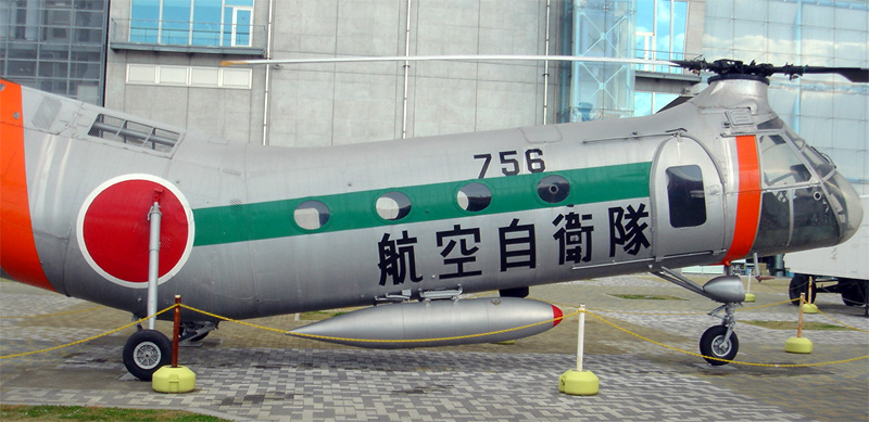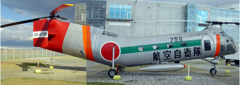 4. 珍しい機体 バイアセッキ H-21である。米軍から「中古機供与」で日本に与えられたもの。H-21は 昭和27年初飛行し、535機が生産されている。 航空自衛隊に対しては 昭和35年 H-21Bが10機居よされ、救難用として使われたが、部品不足のため、昭和42年に除籍されている。バイアセッキ社は 後、バートル社となった。 また、民間型のV-44を陸上自衛隊が研究用に2機買い入れテストなどに使ったことが知られている。
