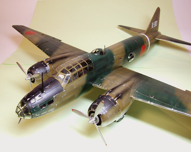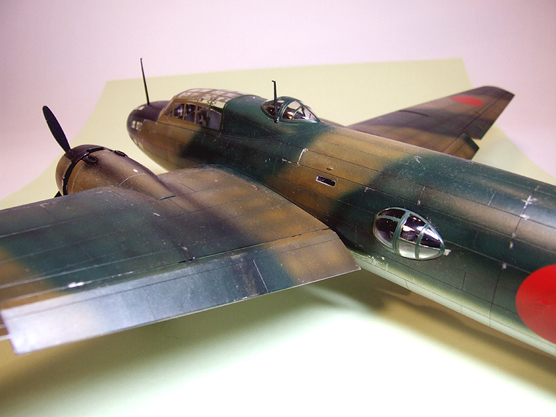 この後自分は何機か日本機を作りましたが、今この作品を見ると、今なら違う塗装のしかたをしますね。もう少し迷彩ラインを台紙等使ってもう少しはっきりさせるかな・・・? |