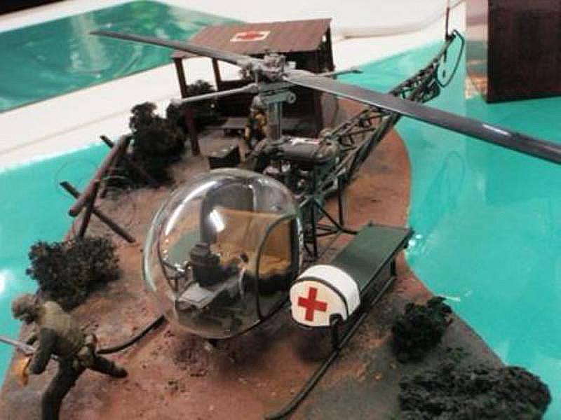大きなキャノピーに両サイドにタンカーを設置したヘリコプターです。ベトナムで活躍した物と聞いていたのでディオラマにした記憶があります。