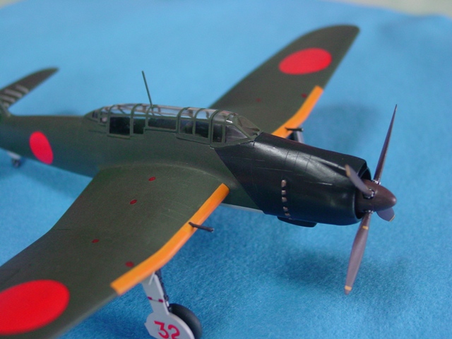 塗装は、斜めの防幻塗装があるタイプ。この塗装は、NASMポール・E・ガーバーに保存されている実機や『航空ファン』1967年7月号の掲載写真で存在が確認できます。これに類する塗装図は、橋本喜久男氏が『航空ファン』1978年1月号で131航空隊として紹介、長谷川一郎氏が『航空ファン』1979年1月号で機番不明で紹介しています。主脚柱はカッコイイので黒にしましたが、『航空ファン』1967年7月号の掲載写真では無塗装が正解のようです。その掲載写真の機は、翼上面の日の丸に白縁付きがあります。